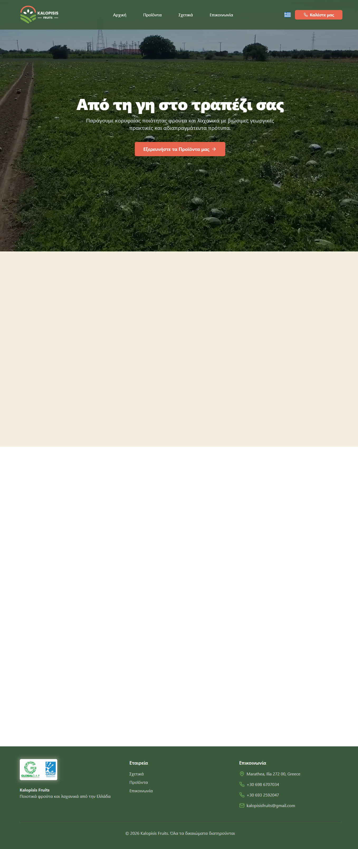 Σύγχρονη ψηφιακή παρουσία για την Kalopisis Fruits, αναδεικνύοντας την ποιότητα και την παράδοση στην παραγωγή φρούτων και λαχανικών.