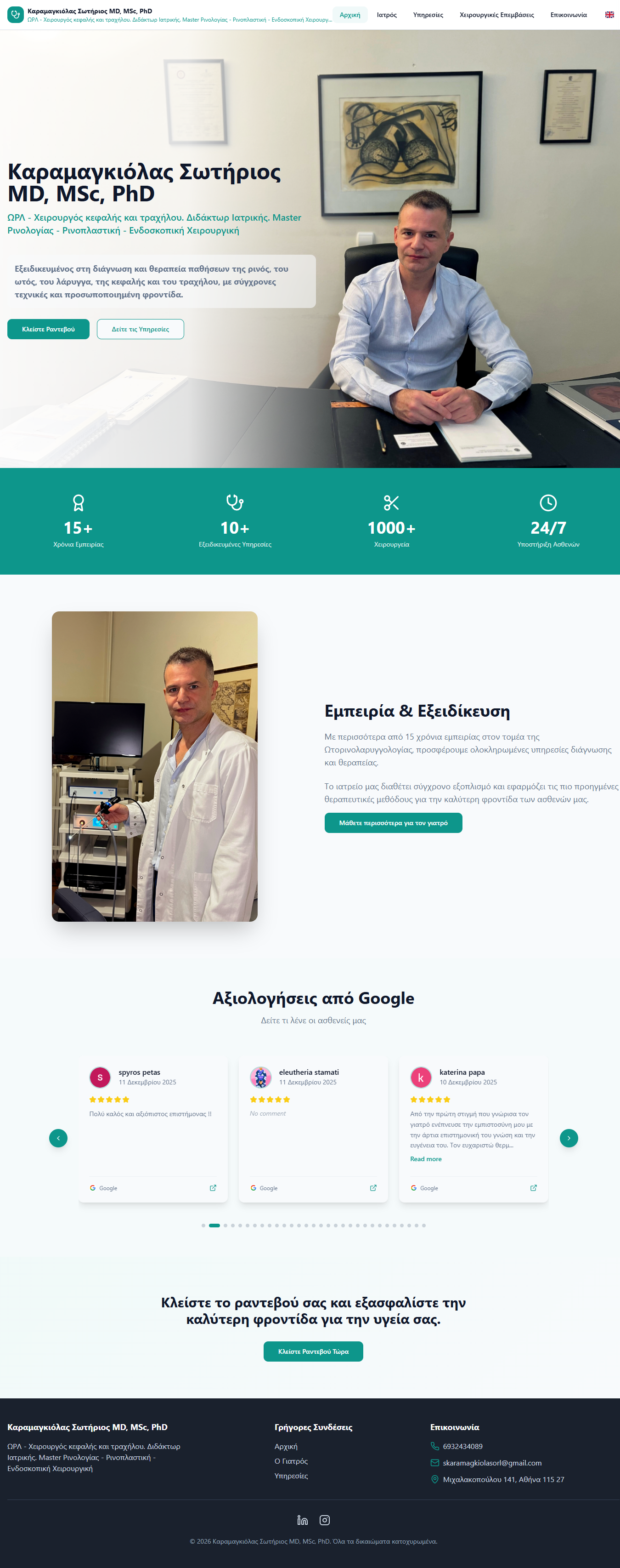 Προπορευμένη ψηφιακή παρουσία για Χειρουργό Ωτορινολαρυγγολόγο, με έμφαση στην εξειδικευμένη πληροφόρηση και την εύκολη επικοινωνία.