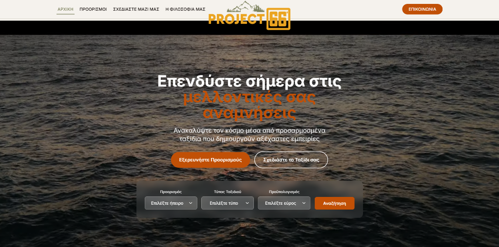 Σύγχρονη πλατφόρμα ταξιδιωτικών εμπειριών, προσφέροντας εξατομικευμένα πακέτα και μοναδικούς προορισμούς σε όλο τον κόσμο.